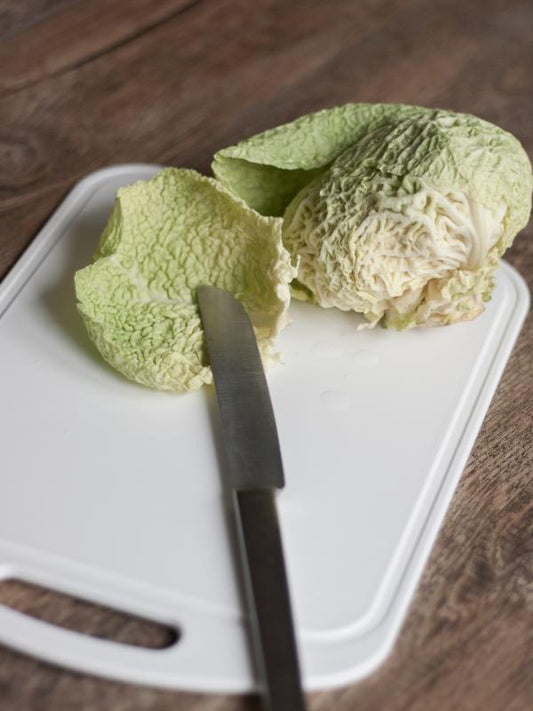 Schneidebrett mit Saftrille aus Biokunststoff, mittgelgroß