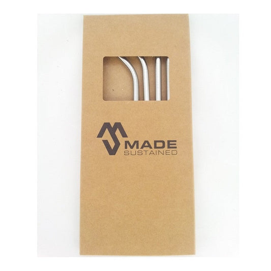 Edelstahl-Trinkhalm für Kinder & Cocktails, 4er Set mit Reinigungsbürste, Made Sustained