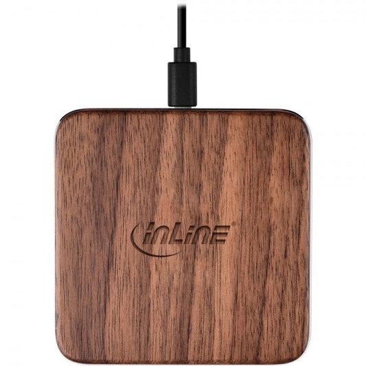InLine® Qi woodcharge, Smartphone kabellos laden, wireless fast charger, 5/7,5/10W, Walnuss Gehäuse