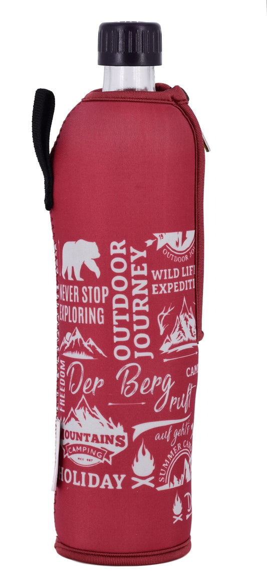 Dora's Glas Mehrwegflasche im Neoprenbezug „Der Berg ruft“